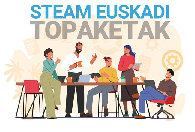 STEAM Euskadi Topaketak es un ciclo de webinars formativos donde se abordan temáticas clave de la educación STEAM como la integración de diferentes asignaturas, las metodologías activas más adecuadas, la cultura científica y el pensamiento crítico, las vocaciones tecnológicas entre las niñas o cómo incorporar la diversidad en el diseño de las actividades para el aula.