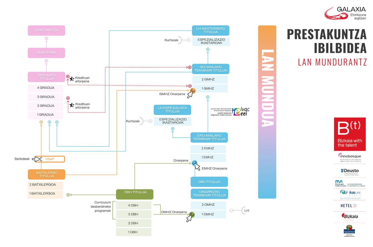 Infografia honetan ikasleek ikasten jarraitzeko har ditzaketen ibilbide akademikoei buruzko ikuspegi orokorra eskaintzen da.